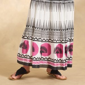 Handcrafted. this flowing. tiered silhouette is all the more special due to its elaborate hand block printing. Pull-on styling with smocked elastic waistline. Fully lined. Due to its handmade nature. each is unique. Viscose. Hand wash. Imported. Sundance exclusive. Sizes XS (0?C2). S (4?C6). M (8?C10). L (12?C14). XL (16?C18). XXL (20?C22). Approx. 40.5l.